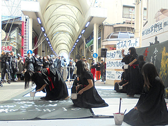 記念行事、広報イベント、お祭りなど、各種イベントにて書道パフォーマンスを行います。楽器とのコラボも可能。屋内屋外を問わず、揮毫する大きさもご要望にお応えします。